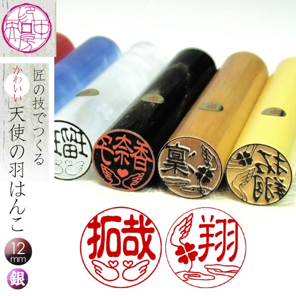 (※実印登録は98%できません、詳しくはお住まいの役所にお尋ね下さい) ご出産やご結婚のお祝いの品、お子様のご入園 ご入学 誕生日プレゼントにも喜ばれます(^-^) はんこ良品のオリジナルがいっぱい詰まった『天使の羽はんこ』 デザインも綺麗に彫り上がる技術も書体もぜ〜んぶオリジナルです。