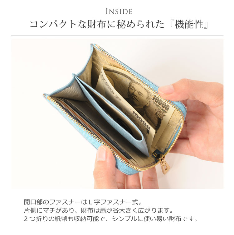 小銭入れの前後の紙幣入れは2つ折りの紙幣が収納可能。