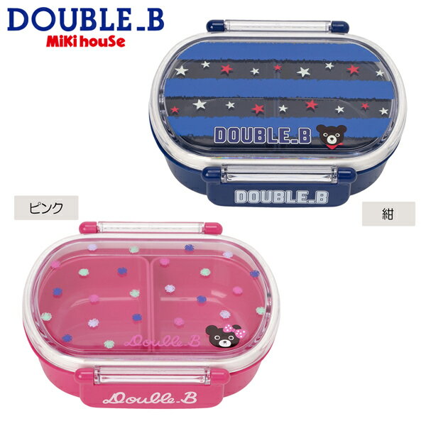 【セール50%OFF】【メール便不可】【DOUBLE B ダブルビー】ボーダー&ドット柄★ランチボックス (お弁当箱) (容量360ml)【ミキハウス】
